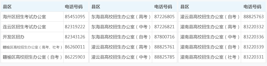 县区招考办服务电话
